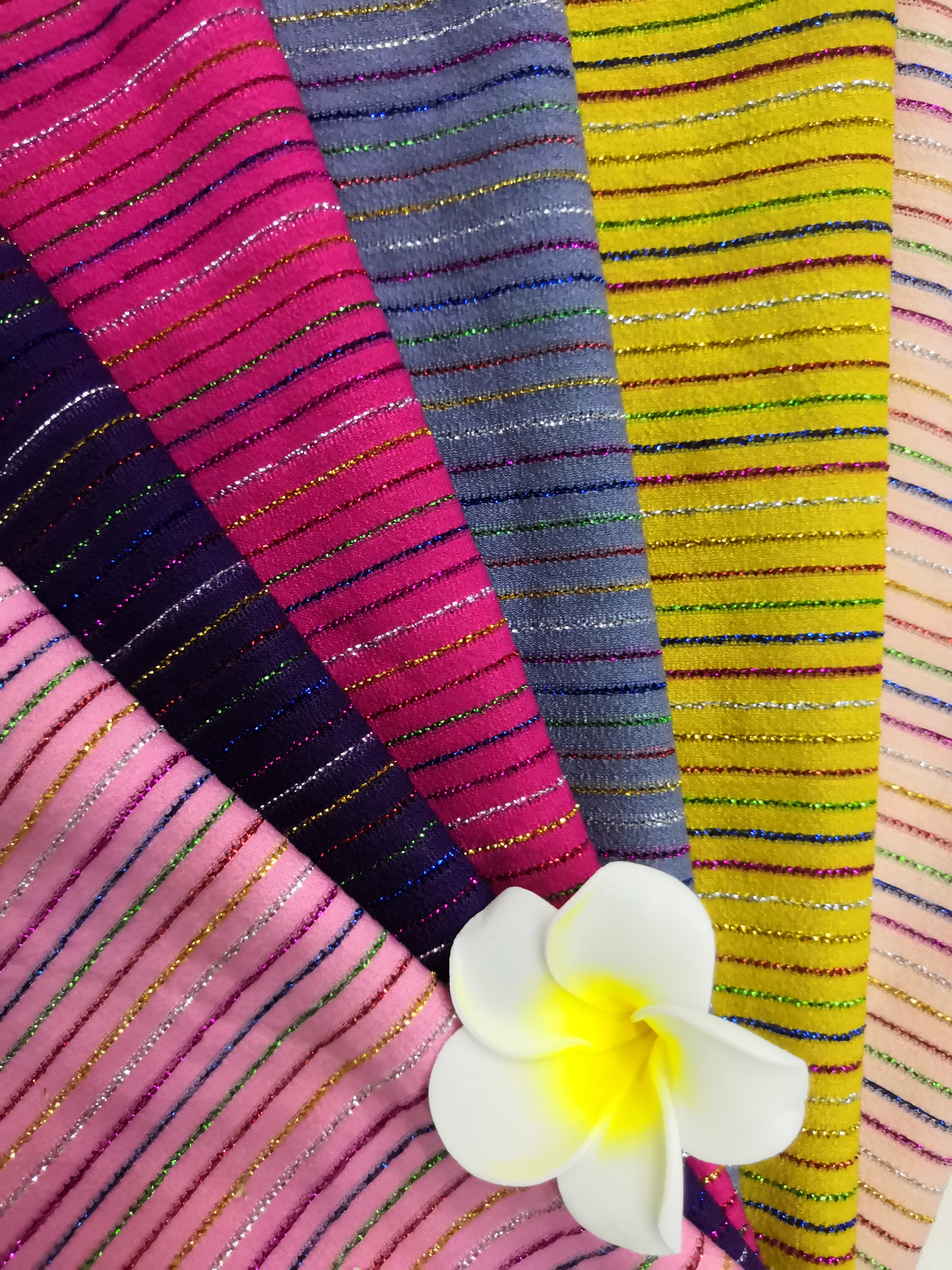 产品介绍:高弹力氨纶布,松开不影响美观。撞色条纹布,颜色多样,给你不一样的定义。可制作各种不同不同风格的时尚服装。还可以做各种小饰品,手工等